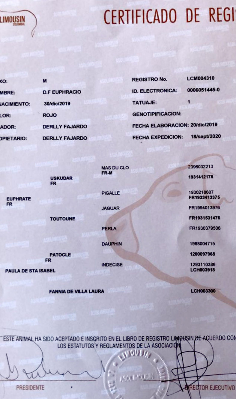 PADRE: EUPHRATE FR MADRE: PAULA DE STA ISABEL RAZA: LIMOUSIN