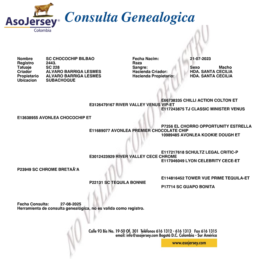 NÚMERO: JL228 FECHA DE NACIMIENTO: 27/07/2023 REGISTRO: 2443 TIPO: LECHE RAZA: JERSEY