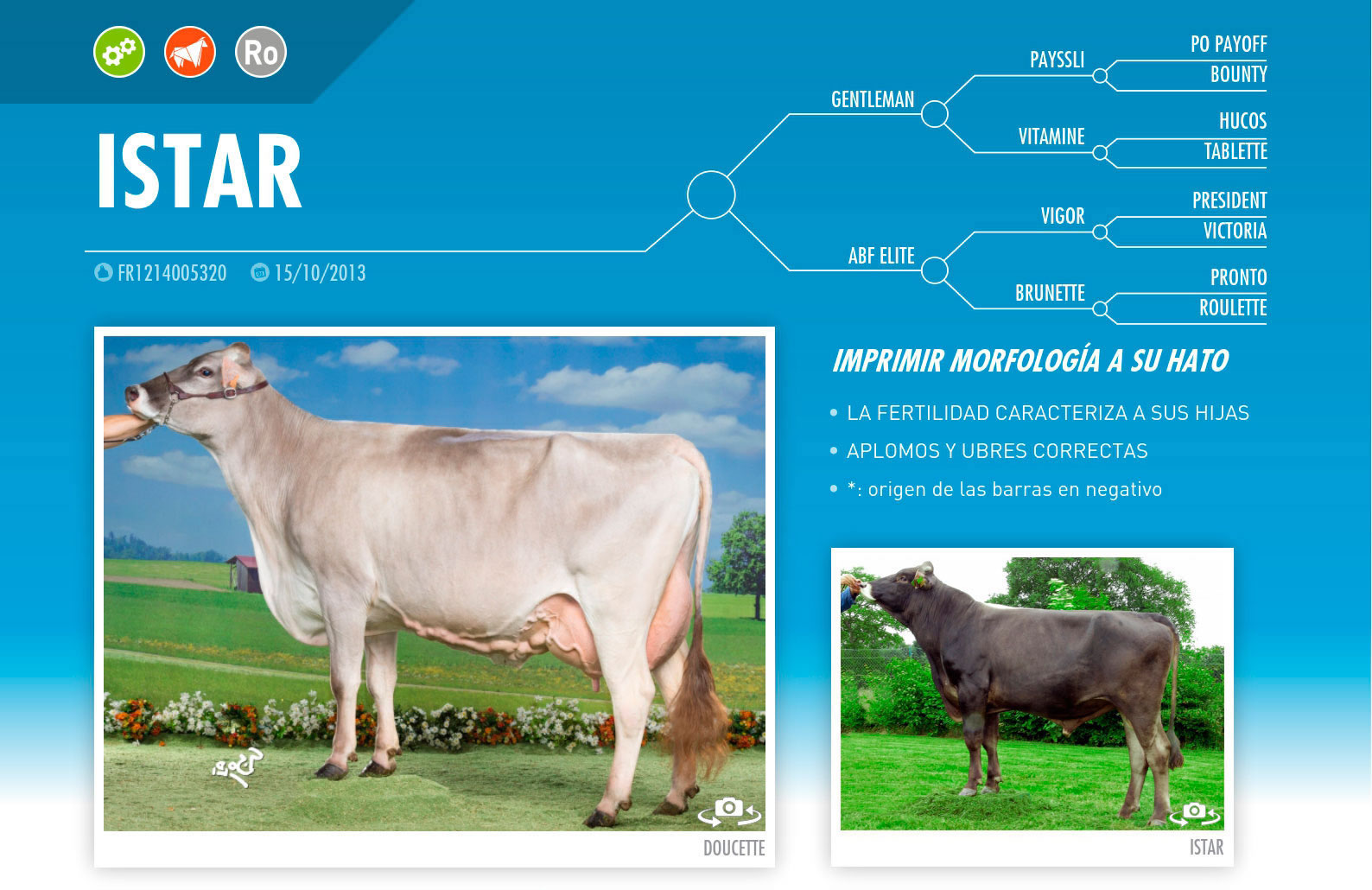FECHA DE NACIMIENTO: 15/10/2013 TIPO: LECHE REGISTRO: FR1214005320